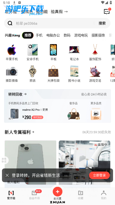 - 转转App的商品种类非常丰富,涵盖了电子产品、服饰、家居用品等多个领域,而且很多商品都是实物拍摄,能更直观地看到商品的实际情况,这让我对商品的质量更有信心。108元现金红包的活动也很吸引人,让我在平台上愉快地完成了第一次交易。