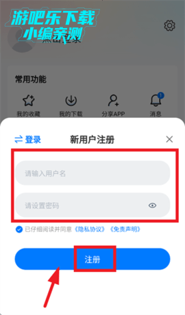 输入用户名,密码,点击注册即可
