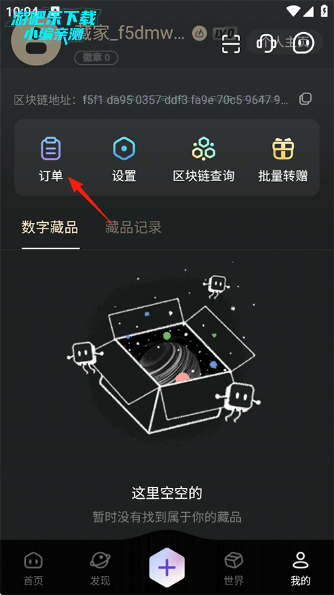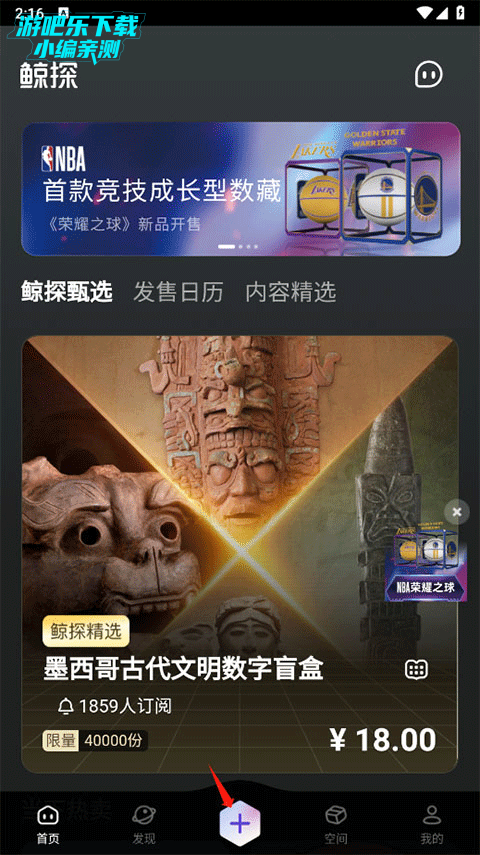 1、首先进入鲸探数字藏品App,点击下方加号;