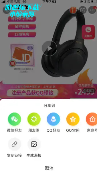 首先我们在京东app中选择好一件推广的商品,然后点击其商品详情页面右上角的分享图标