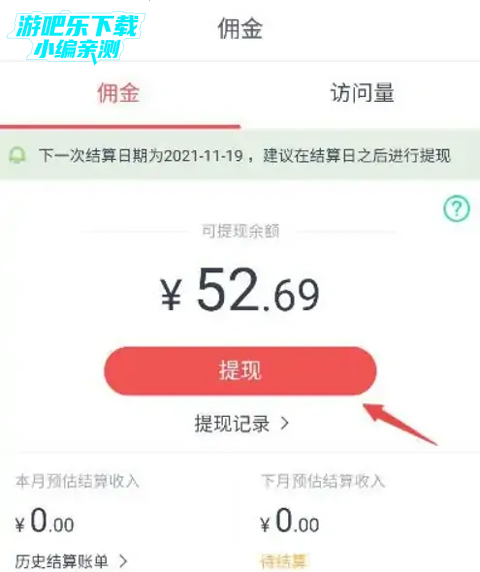 用户可以打开并登录京粉app,前往【佣金】页面中点击【提现】后