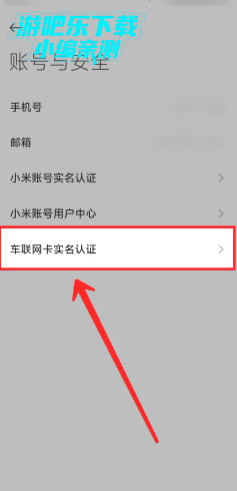 3.在账号与安全页面,点击【车联网卡实名认证】。