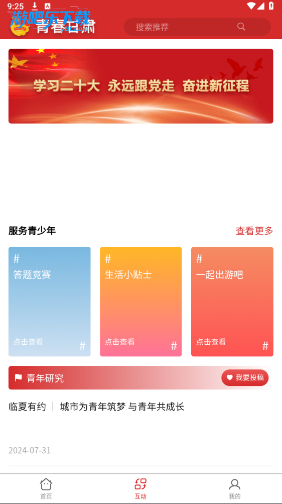 2、青少年也可以在互动版块参加各类活动,包含答题竞赛、生活小贴士、一起出游吧等各类活动;