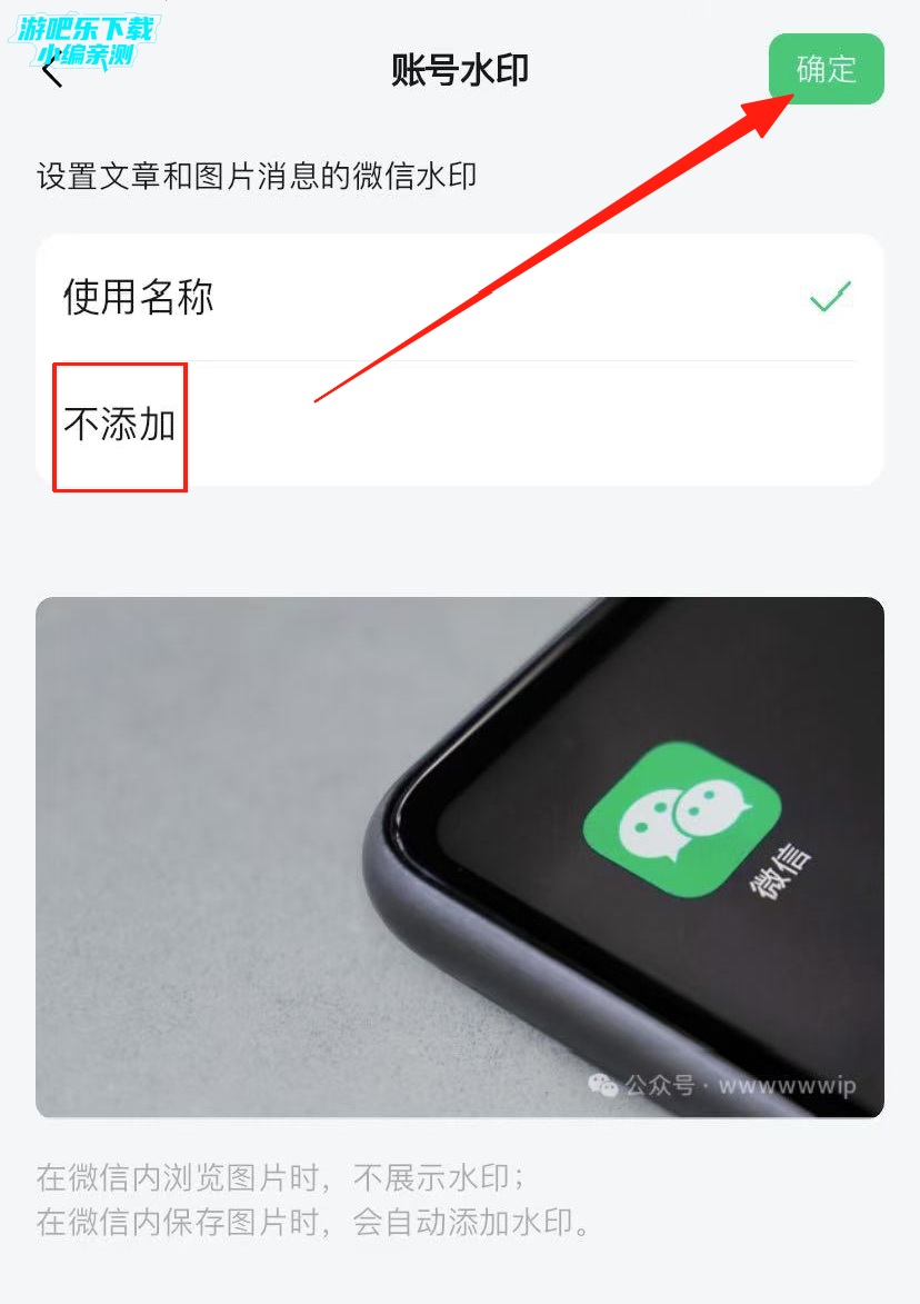 4、选择不添加,然后点击确定就可以移除公众号水印了