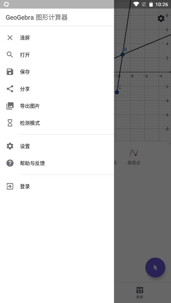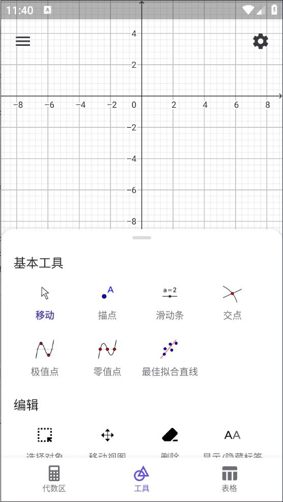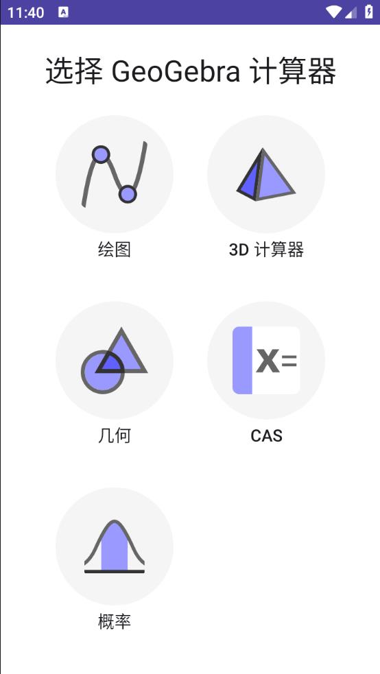1、下载安装geogebra图形计算器安卓版,进入其主界面;