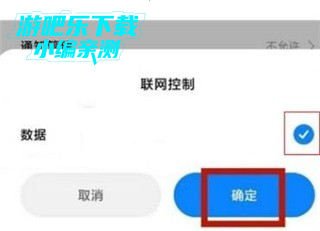 6、在弹出的联网控制对话框,勾选数据选项点击确定按钮即可。