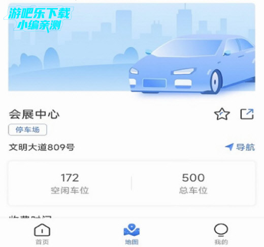点击图标查看停车场名称、距离、实时余位、收费标准。