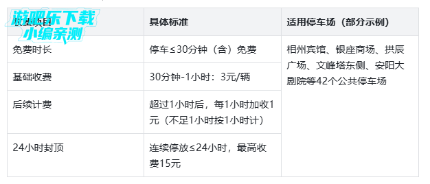 2025年7月15日起,市区42个公共停车场统一调整收费标准,实行“半小时免费+阶梯计费”,具体如下: