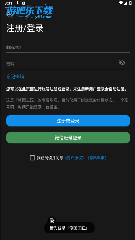 1、在游吧乐下载修图工匠app并安装到手机上,