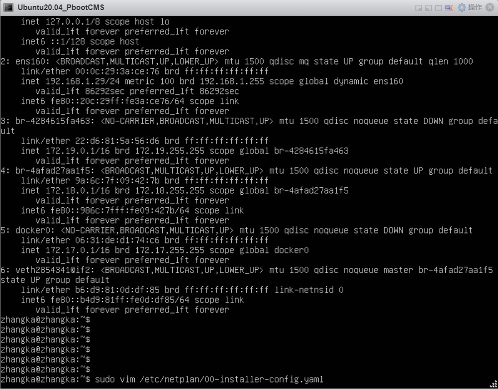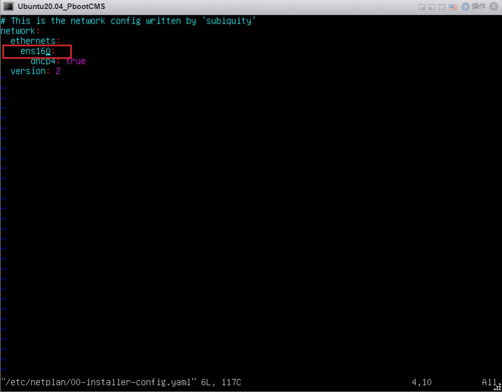 10、使用命令 vim /etc/netplan/00-installer-config.yaml 修改网卡配置文件