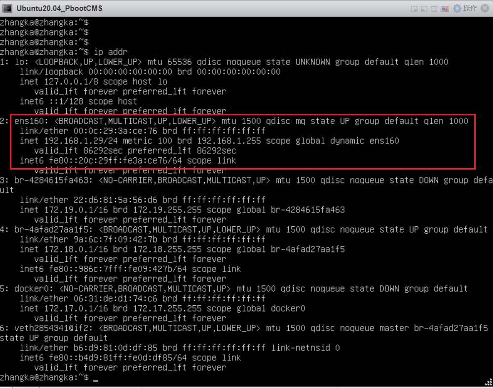 9、使用ip addr命令查看网卡mac地址(这里可以看到网卡名称为ens160),或者使用ifconfig