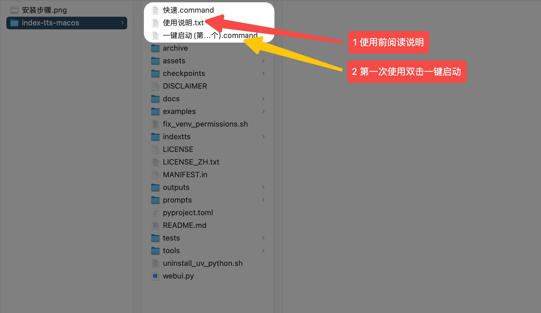 1. 第一次使用请双击【一键启动(第一次打开点这个).command】