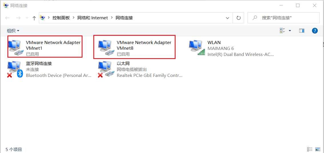 首先,注意查看适配器选项里的网络连接这两个网络连接是否存在,如果不存在可以重新装一下VM