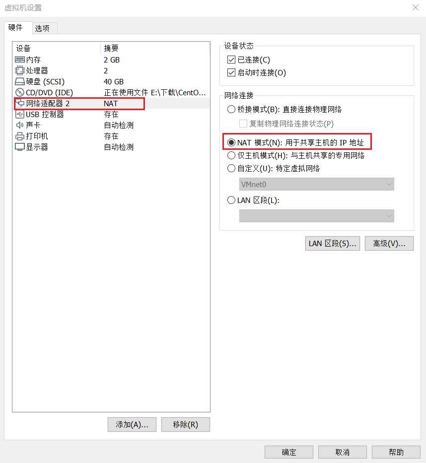 虚拟机设置里,找到“网络适配器”,右边的网络连接选择“NAT模式”,如果不行的话再 linux系统。还是不行的话接着看第二种解决方案。