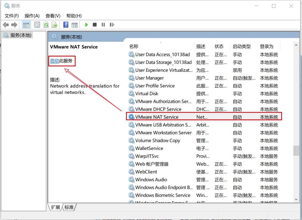 win + R,输入:services.msc ,启动VMware NAT Servise服务