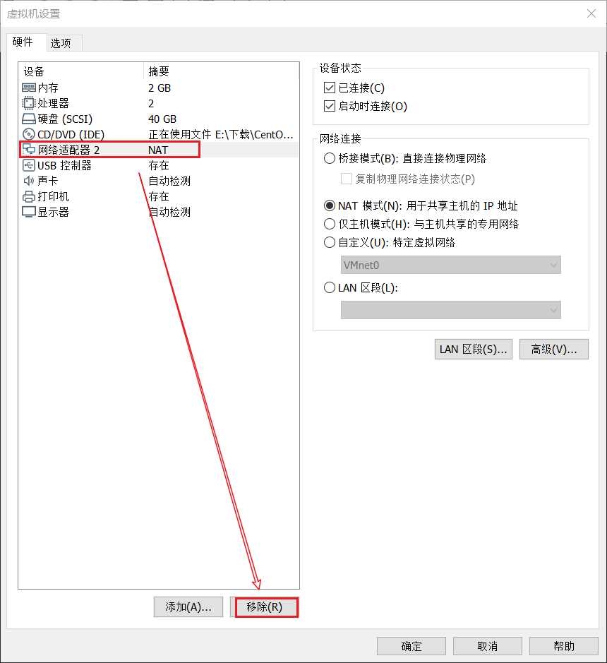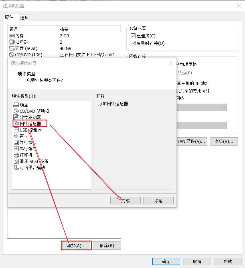 需要把该虚拟机的网络适配器移除,然后重新添加一下